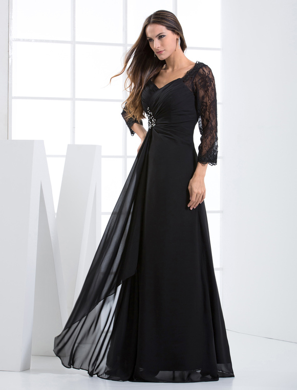 Black chiffon evening dress