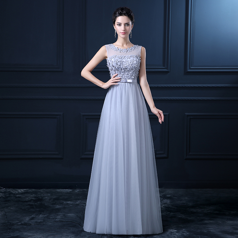 Blue grey evening dress